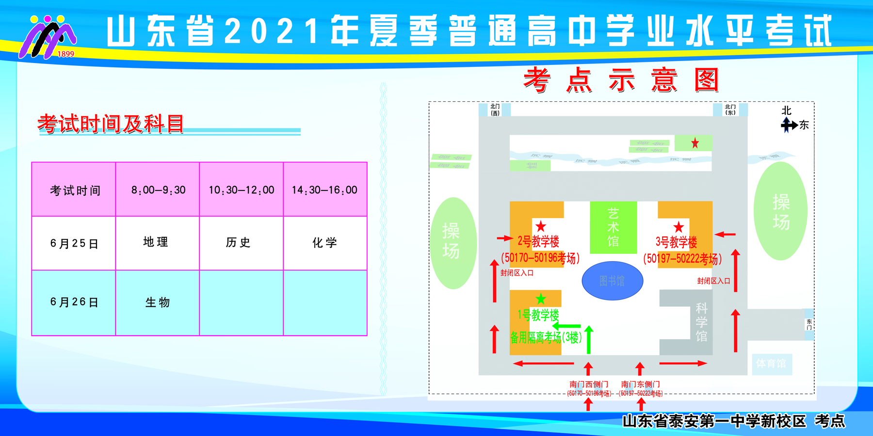 山东省2022年夏季普通高中学业水平合格考试泰安一中新校区考点考场分布
