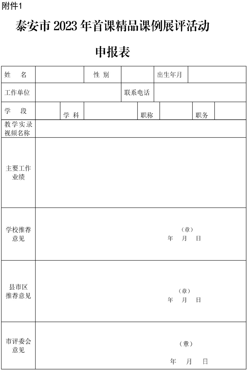 泰教科院(2023)4号 首课教学名师申报通知