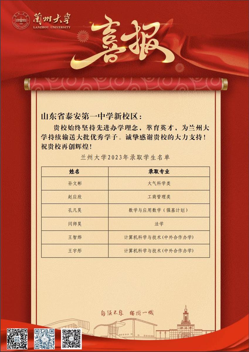 南开大学向泰安一中发来喜报