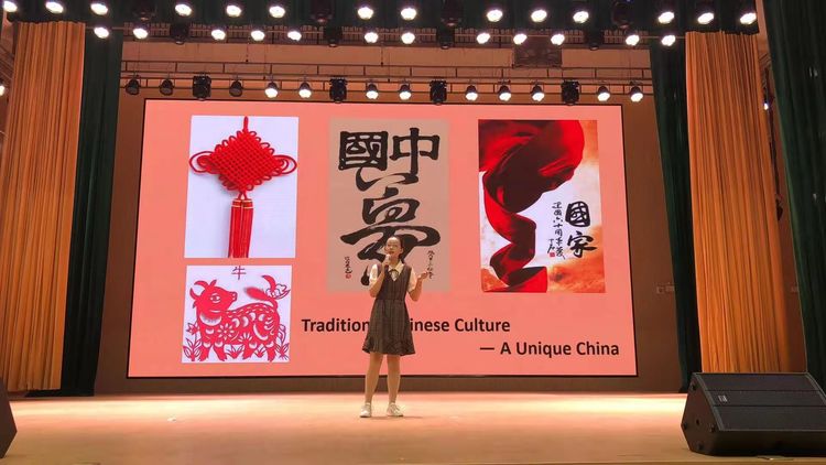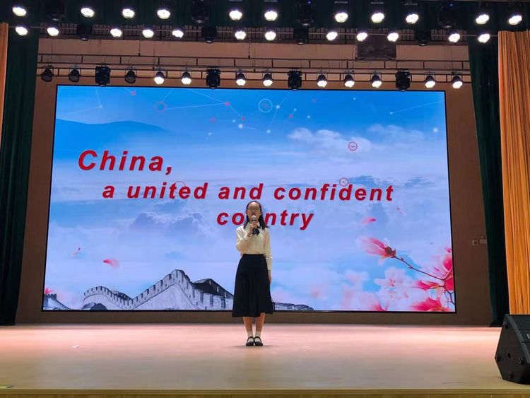 27位选手用自己深刻的理解生动诠释了中国文化,中国精神。同学们的热情也激励着老师们,在比赛最后环节英语组老师们进行即兴诗朗诵,表达她们对于祖国的热爱。