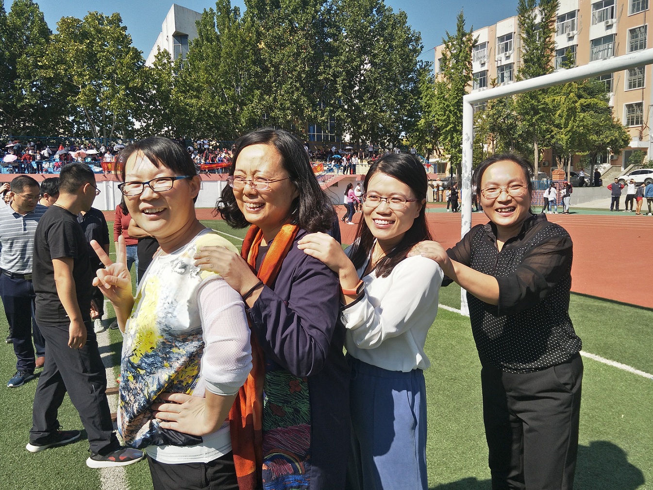 泰安一中2018年教职工运动会于9月29-30日隆重举行,本次运动会设置了男女老年组、中年组和青年组三个组别。来自全校的400多名教师分别参加了男女“足球定点射门”、“实心球投准”、“篮球定点投篮”3个单项项目和“4×100米”接力、“5人踩木屐接力”、“10人单脚火车跑得快”3个集体项目的比赛。 比赛期间老师们奋力拼搏,你追我赶,气氛热烈,笑声不断,既赛出了风格,又赛出了集体凝聚力,充分展现了我校广大教职工健康快乐的运动风采和积极向上的精神风貌。 (工会)