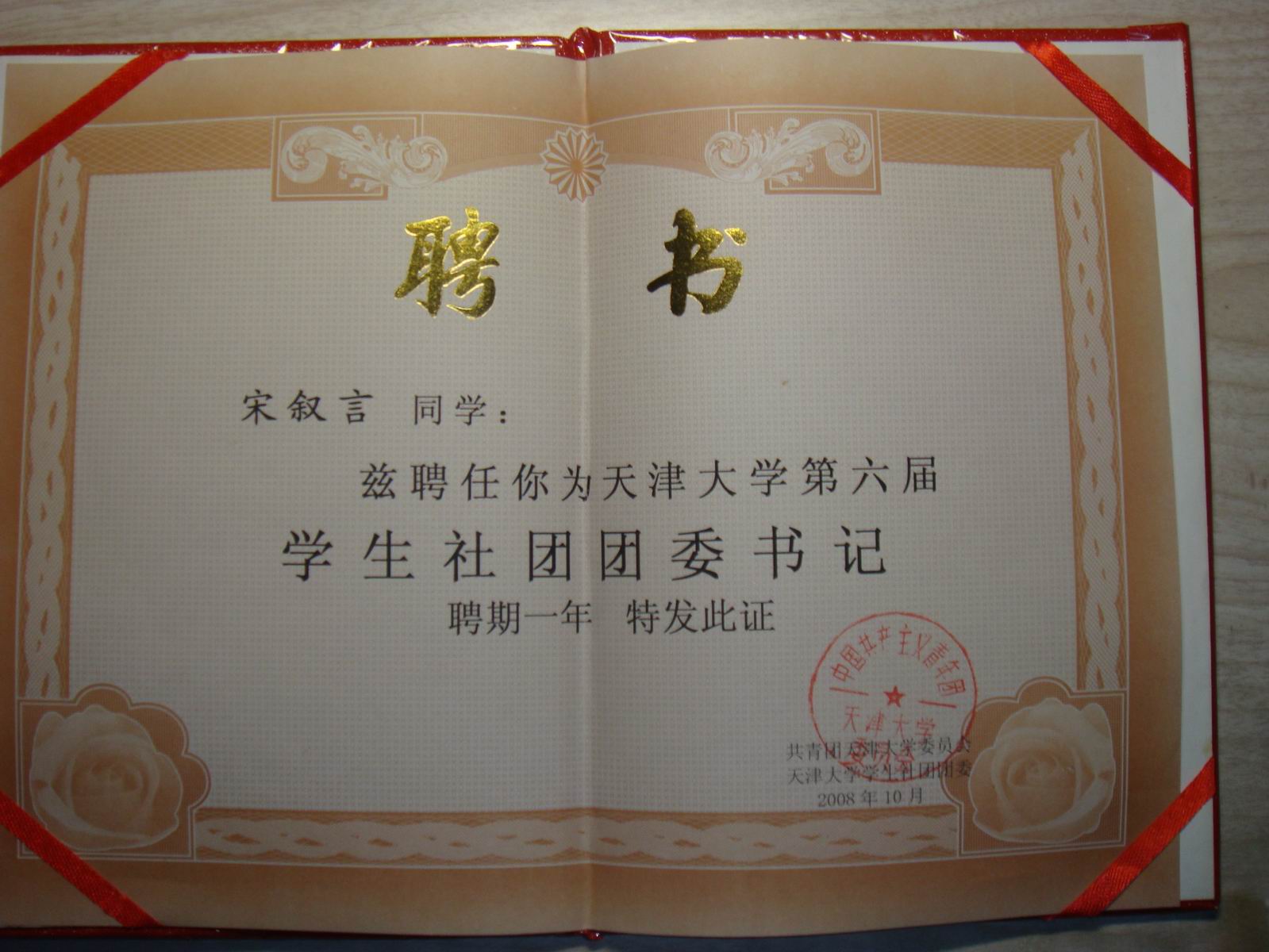 喜报我校2006届毕业生宋叙言同学在天津大学综合素质优良特长表现突出 |