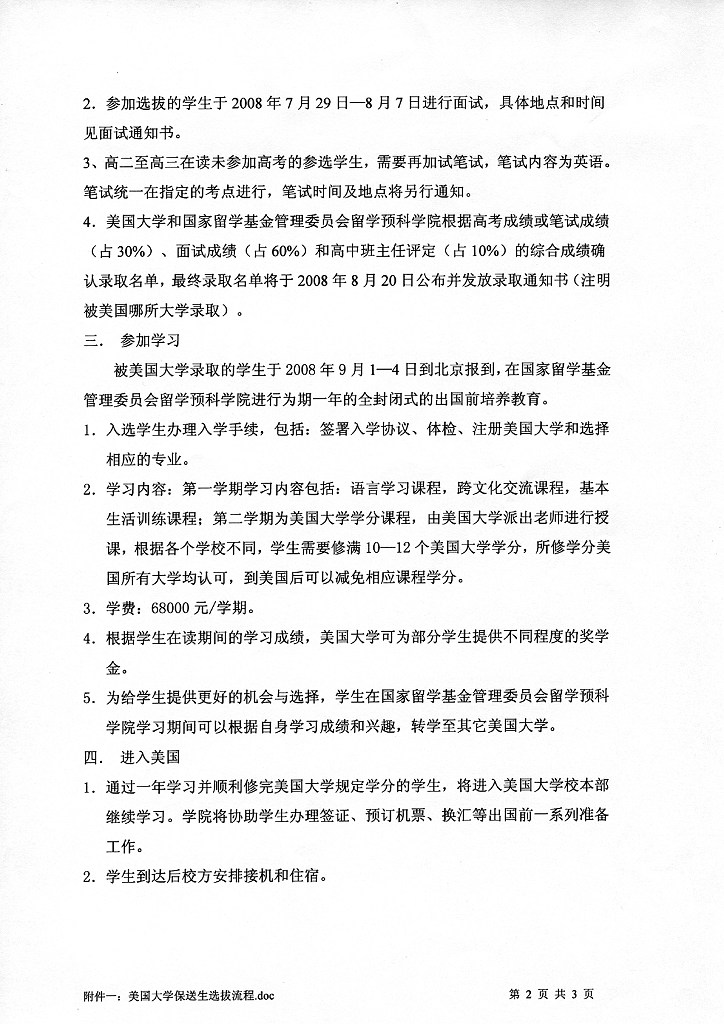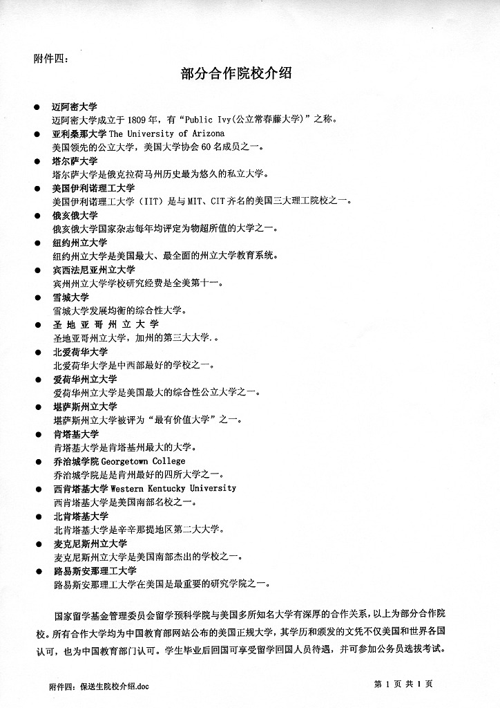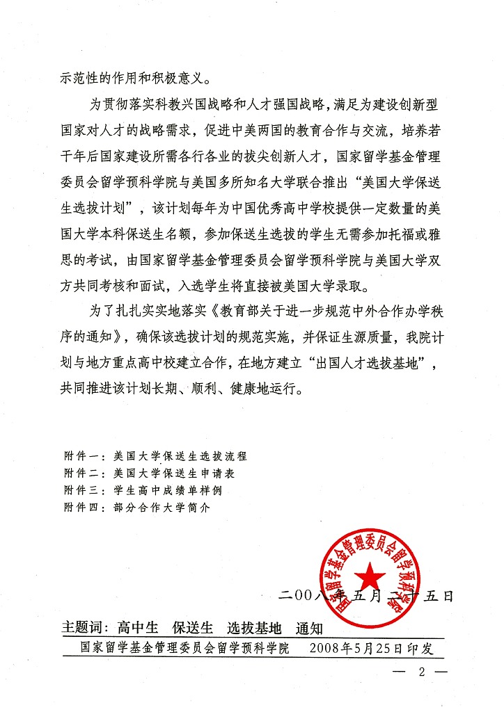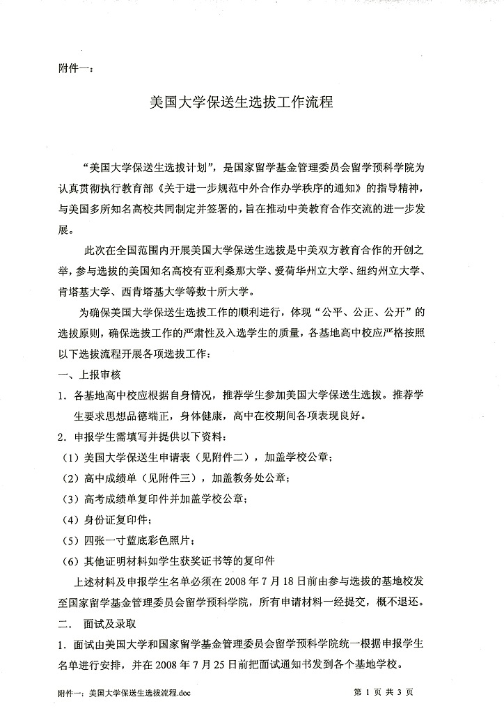 关于选拔“美国大学保送生”的通知