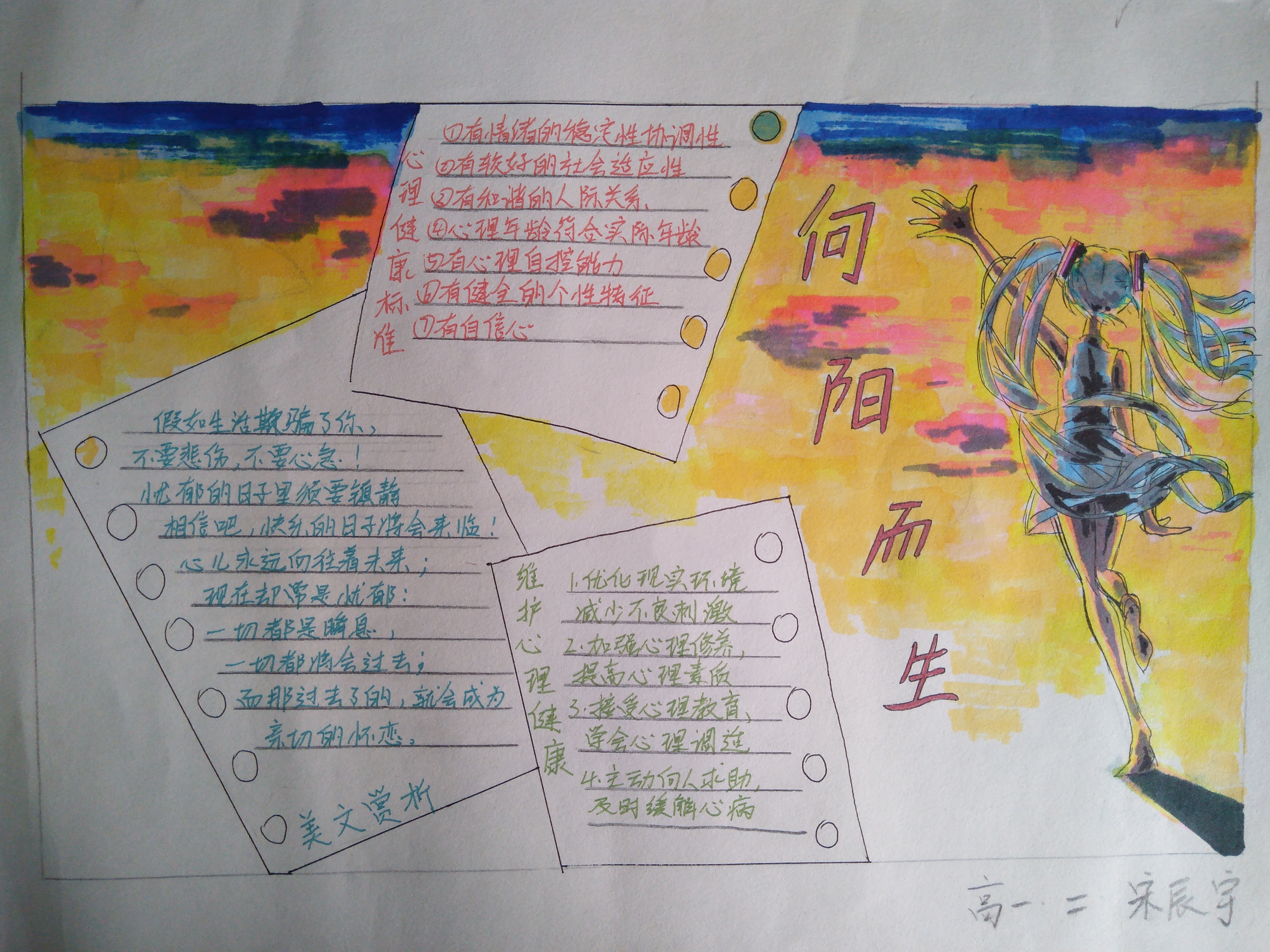 此次手抄报比赛为学生搭建起锻炼心理品质,提高心理素质的平台,使学生能阳光面对生活,积极乐观对待现实,体现了一中学子的精神风貌,达到了宣传心理健康知识的效果。 |