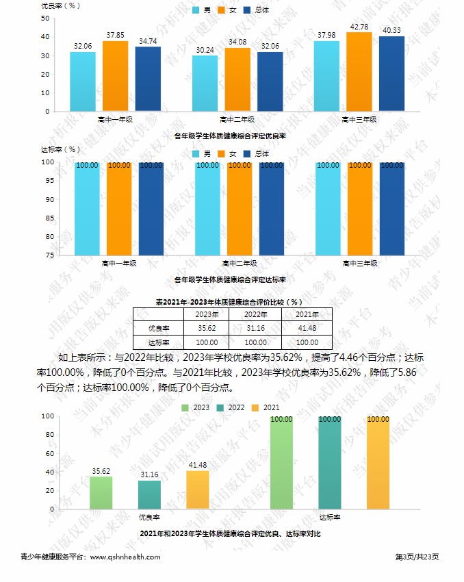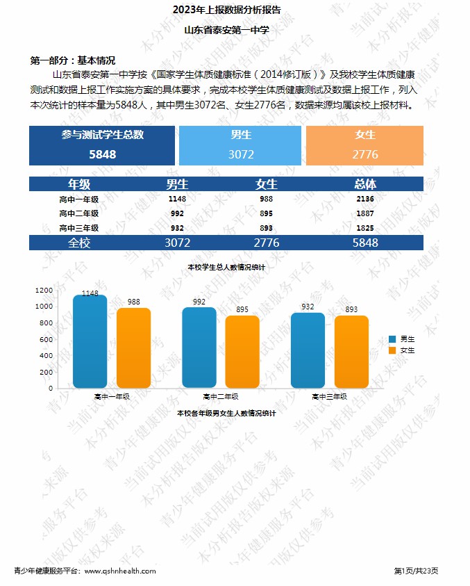 【体育评价】泰安一中2023年度学生体质健康测试成绩评价