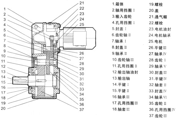 1.特点:平行轴输出、结构紧凑、传递扭矩大、 工作平稳、噪音低、寿命长。